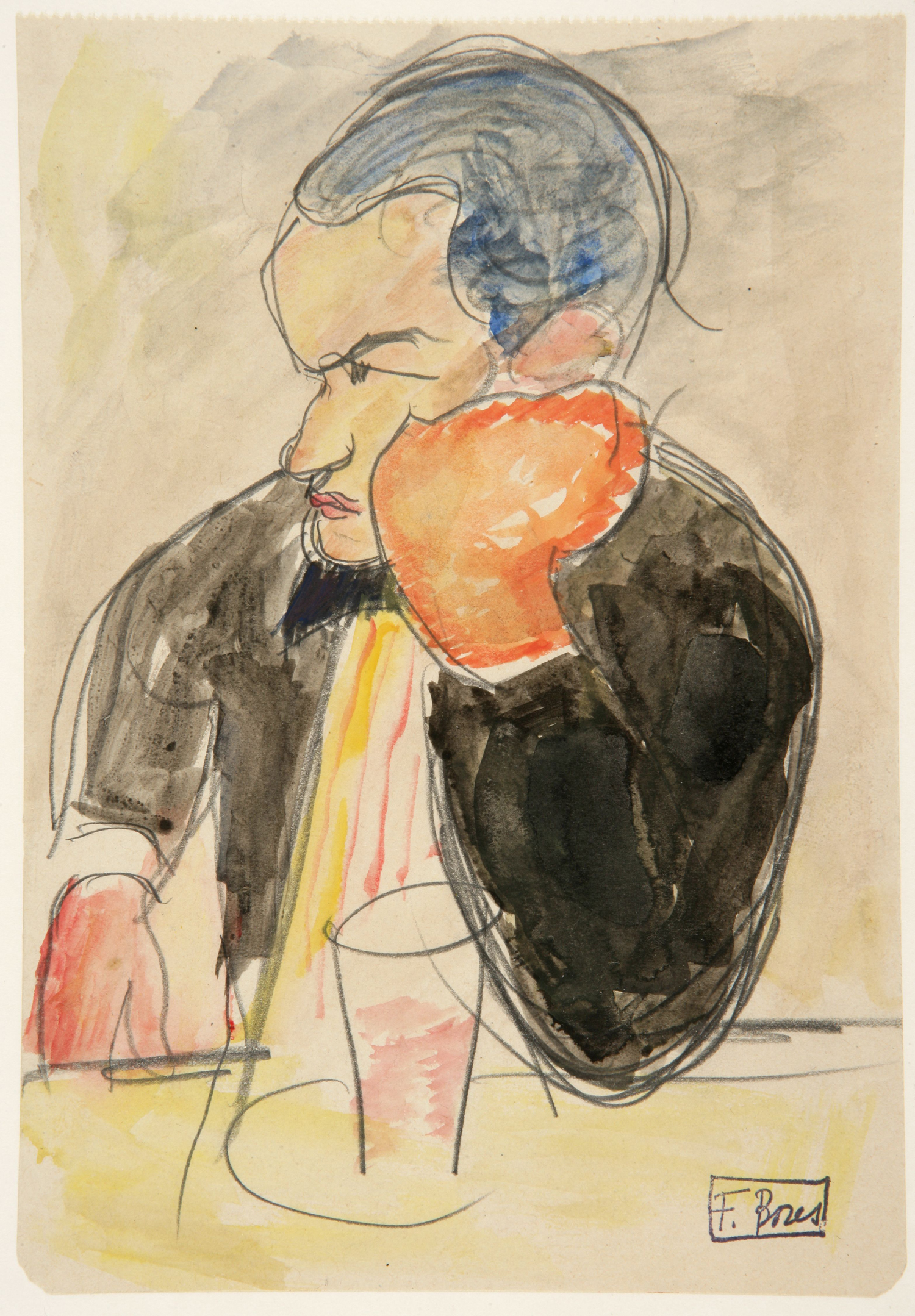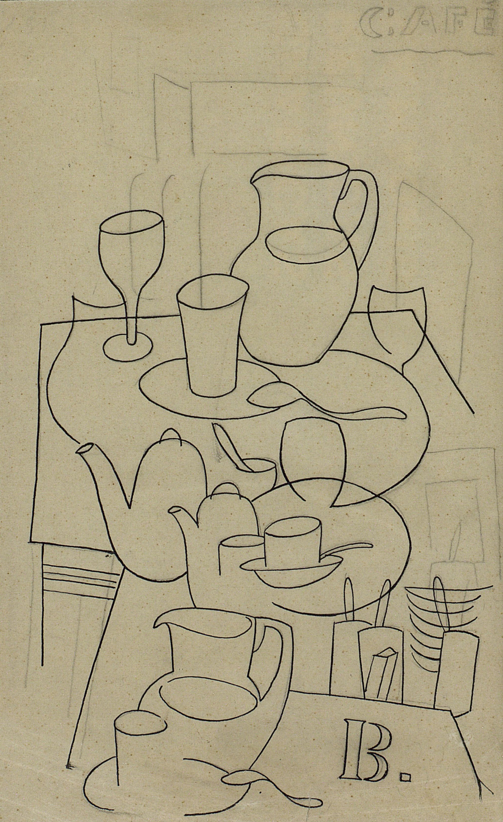 Francisco Bores, Café, hacia 1925. Lápiz y tinta sobre papel, 21 x 13,5