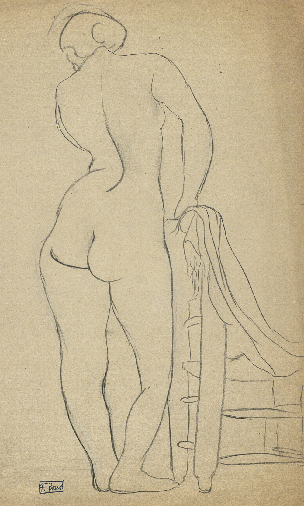 Francisco Bores, Desnudo femenino de espaldas, hacia 1923. Lápiz sobre papel, 40 x 28 cm. Residencia de Estudiantes, Madrid.